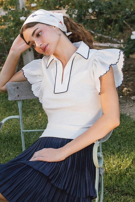 Stella Embroidered Ruffled Short Sleeve Blouse