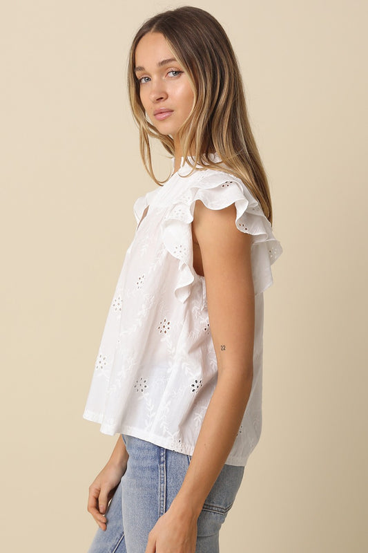Yasmin Eyelet Ruffle Sleeve Blouse in White