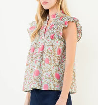 THML Kassie Floral Top in Mint