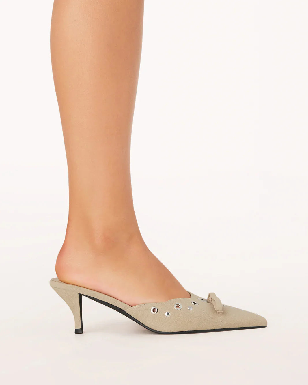 Introducing the Elio Heels by Billini, a stunning and sophisticated addition to your footwear collection. These heels feature a mid, kicked-in stiletto heel and a court-style upper with a closed pointed toe for an elegant silhouette. The stud and eyelet feature on the upper, finished with a mini bow, adds a touch of glamour, while the luxe scalloped trim enhances their chic appeal. The open heel counter provides a modern twist, and the synthetic..